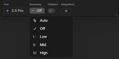 In Go, most reasoning-capable models (e.g. GPT-5.x, Gemini Pro, Claude Sonnet/Opus) allow you to set a Reasoning Level, which adjusts how much computational depth the model uses when processing a given property or prompt.
