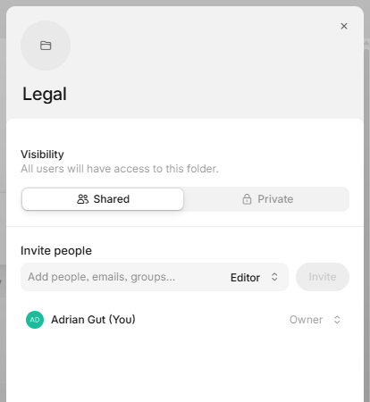 Control who can see or edit folders and agents. Click on the folder's three dot menu and then Manage permissions option to control who has access to the folder.