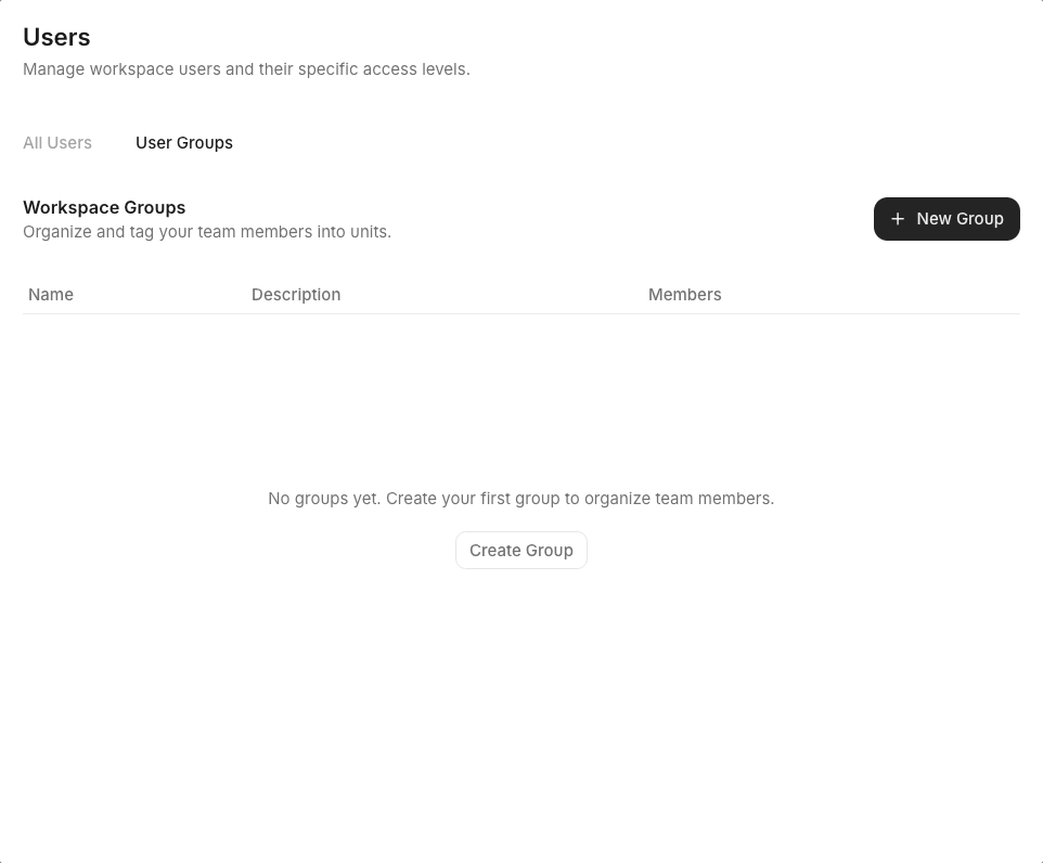 Tip: User groups make onboarding, offboarding, and permission management faster and more consistent. Add new team members to the right groups, and they automatically receive access to all relevant resources.
