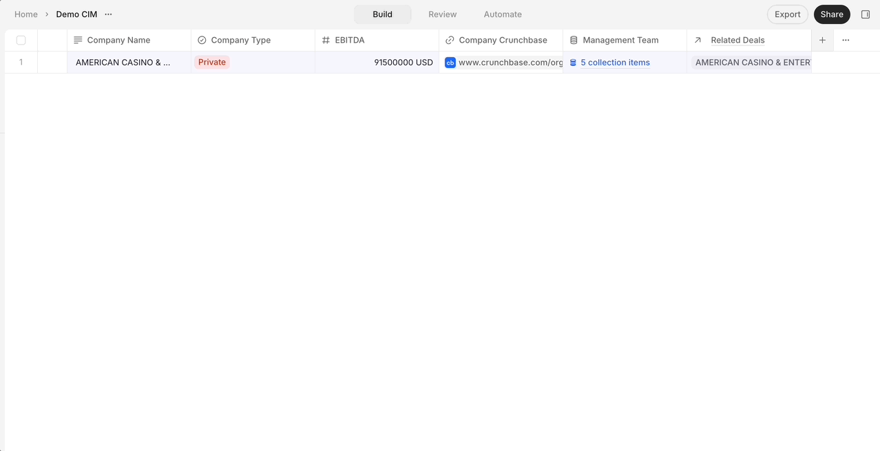 Suppose your first CIM Triage agent is focused on a specific company, and you also have a second agent (such as a Deal Analysis agent) that may reference the same company. Linking these related entities can provide valuable context and enhance your analysis.