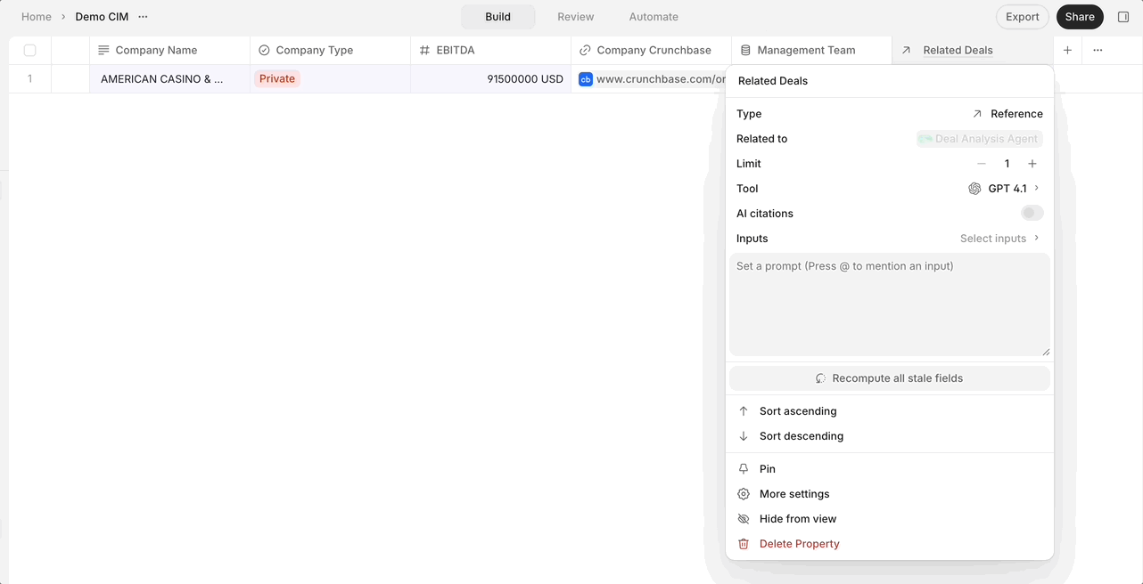 Reference properties make it easy to connect, enrich, and analyze related data across agents—whether you want to automate the matching or do it manually for full control.